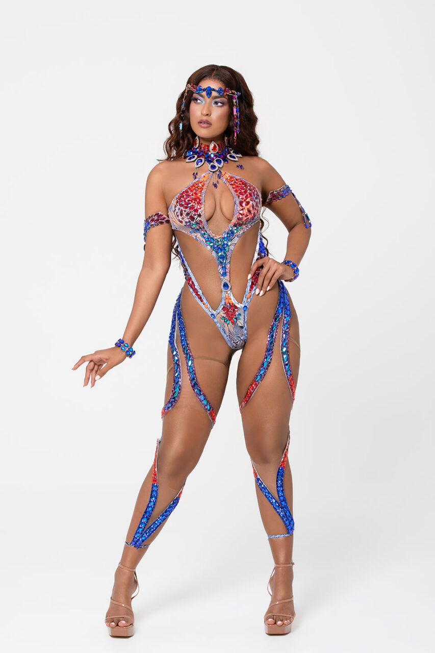 Includes Backline Bodywear (monokini), Crown, Neck, Pair of Upper Arms, Pair of Wrists, Pair of Upper and Lower Legs